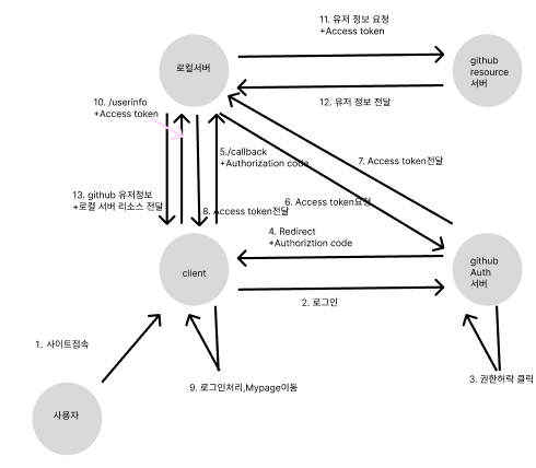 GitHub에서 사용자가 인증을 완료하면 authorization code가 함께 callback url로 전송되고,