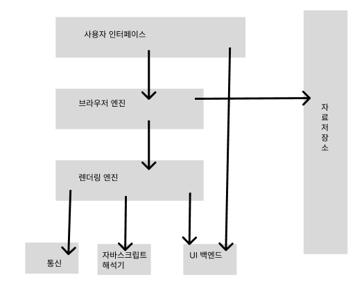 브라우저 엔진 + 렌더링 엔진 => 브라우저 엔진