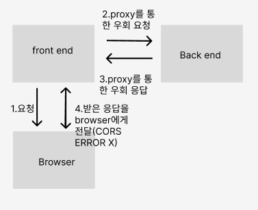브라우저 API를 요청할 때 백엔드 서버에 직접적으로 요청을 하지 않고, 현재 개발서버의 주소로 우회 요청