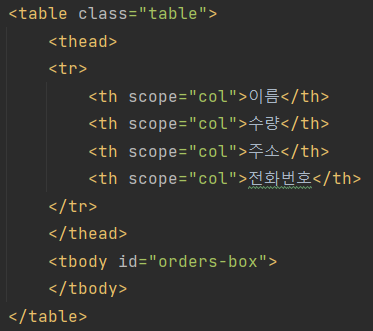 <tbody> #<tbody id="orders-box">로 수정