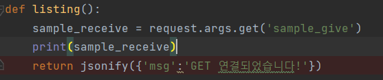 sample_receive = request.args.get('sample_give') #sample_give를 받는다.