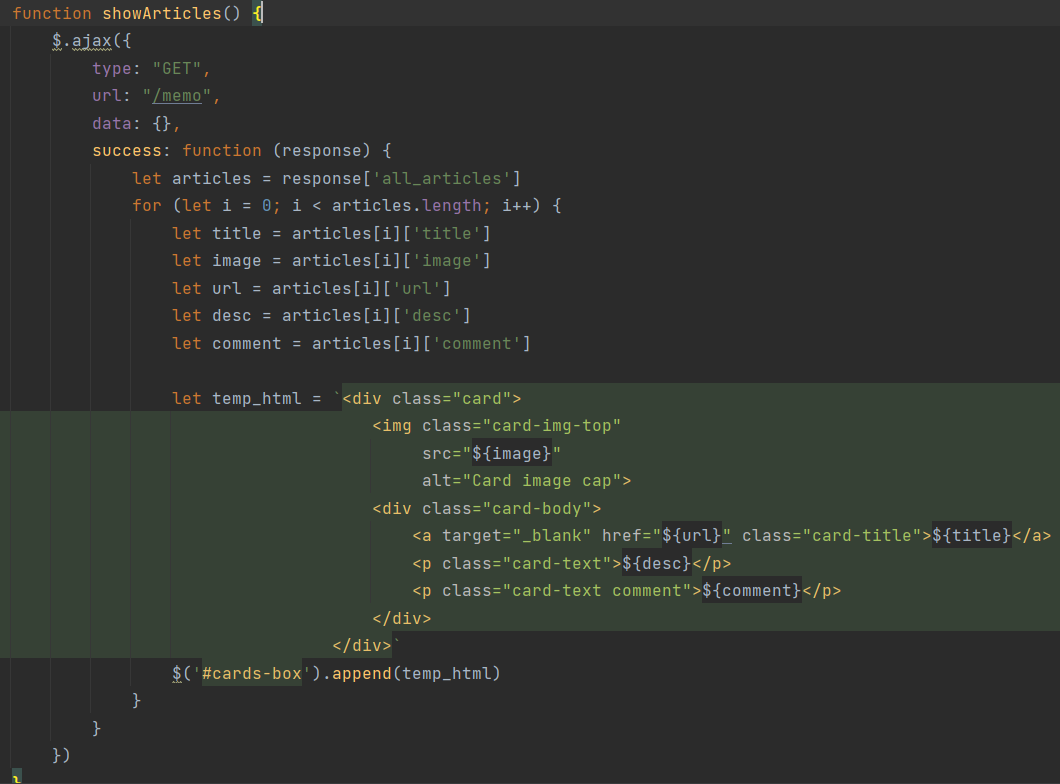 - 아티클(기사)들의 정보(제목, 설명, URL, 이미지URL, 코멘트) → 카드 만들어서 붙이기