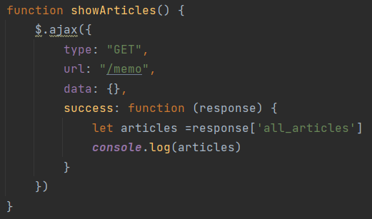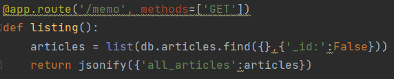 @app.route('/memo', methods=['GET']) #서버쪽은 /memo로 들어온다.