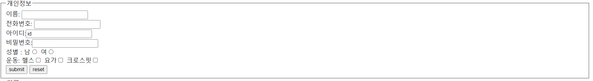 <fieldset style = "width:150"> //폼 내부에서 구역 나눔