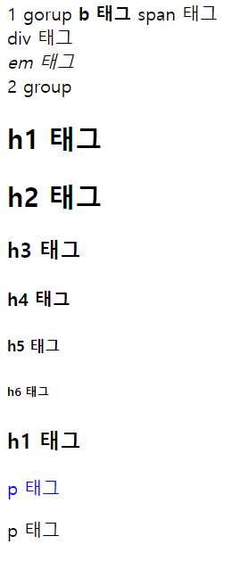 section aside h1{color:blue}는 h1태그만 색이 변함