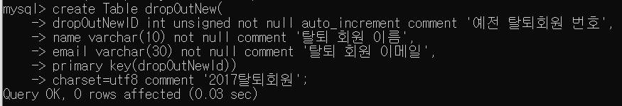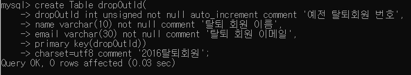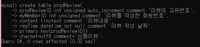 alter table 테이블명 add 추가할 필드명 옵션 코멘트 위치