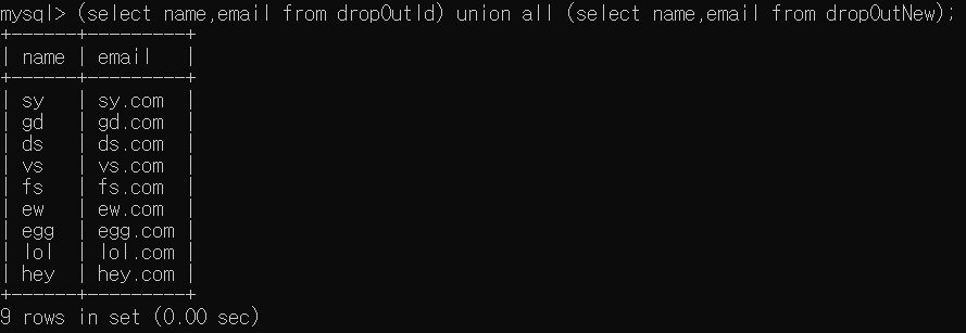 (첫번째 테이블의 select문) union all (두번째 테이블의 select문)
