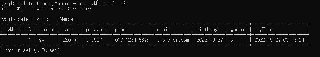 select 필드명 from 테이블명 where 필드명 조건식 값