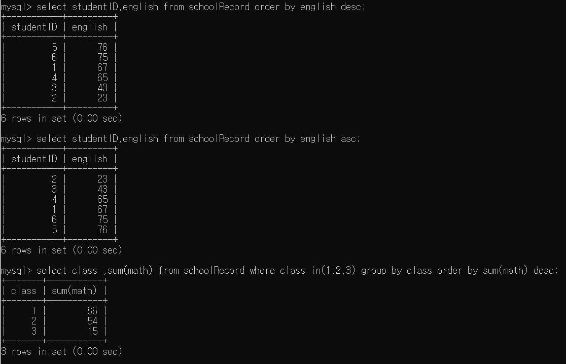 select 필드명 from 테이블명 group by 정렬 기준이 될 필드명 desc 또는 asc;