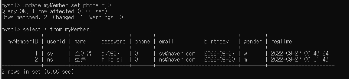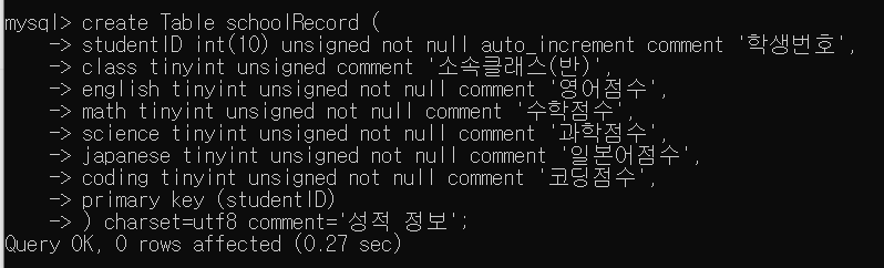 insert into 테이블명(입력할 필드명) values(입력할 데이터);