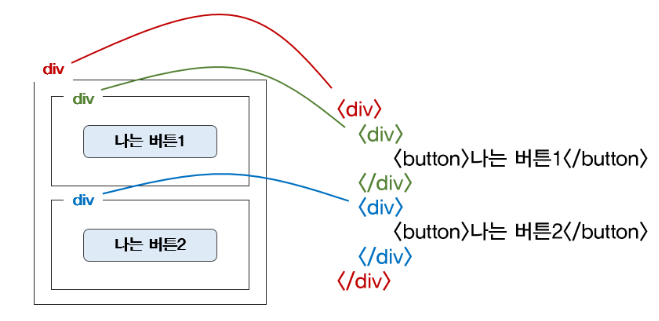 버튼1은 초록색 div의 자식이다.