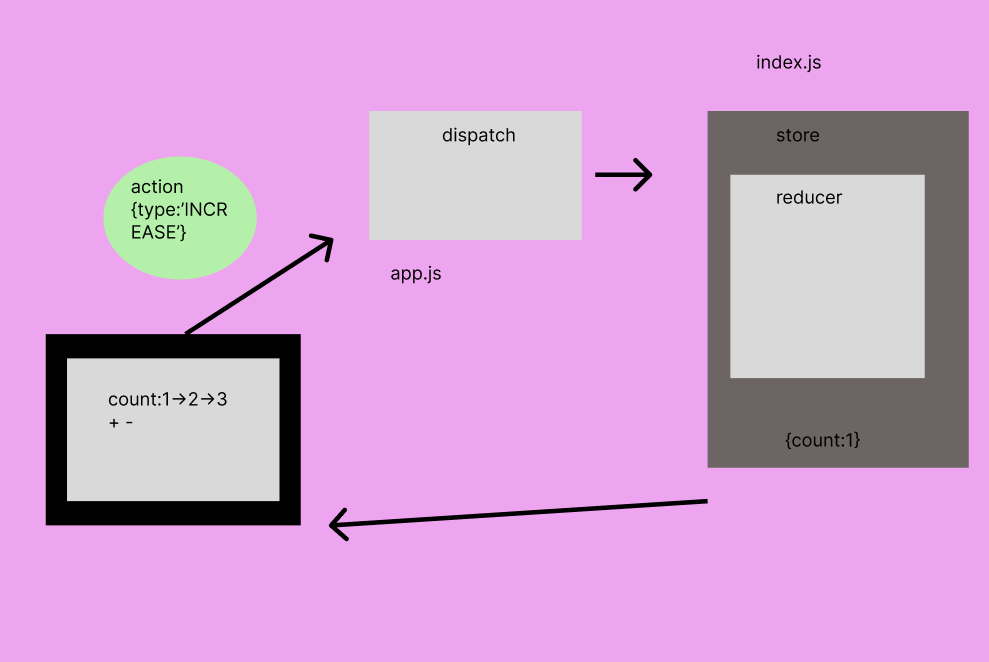 즉, dispatch 함수는 액션을 발생시키고, Reducer 함수를 실행시켜 Store에 저장된 state를 업데이트하는 역할을 한다.